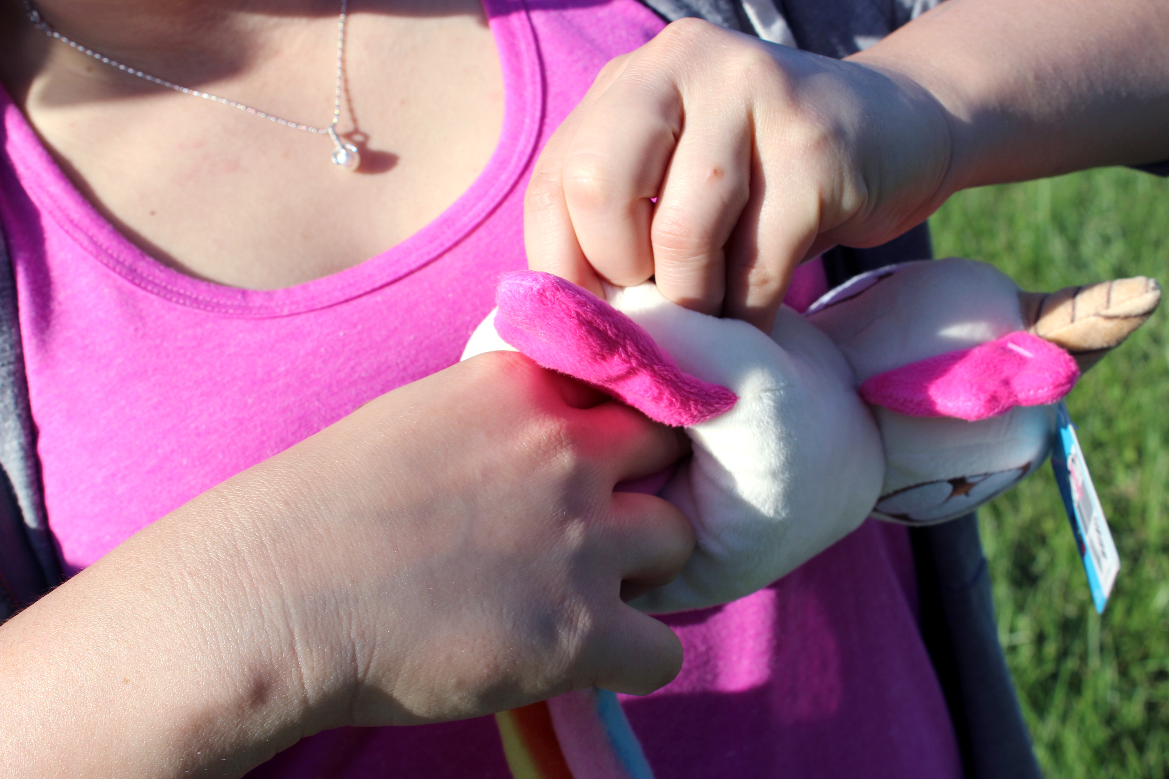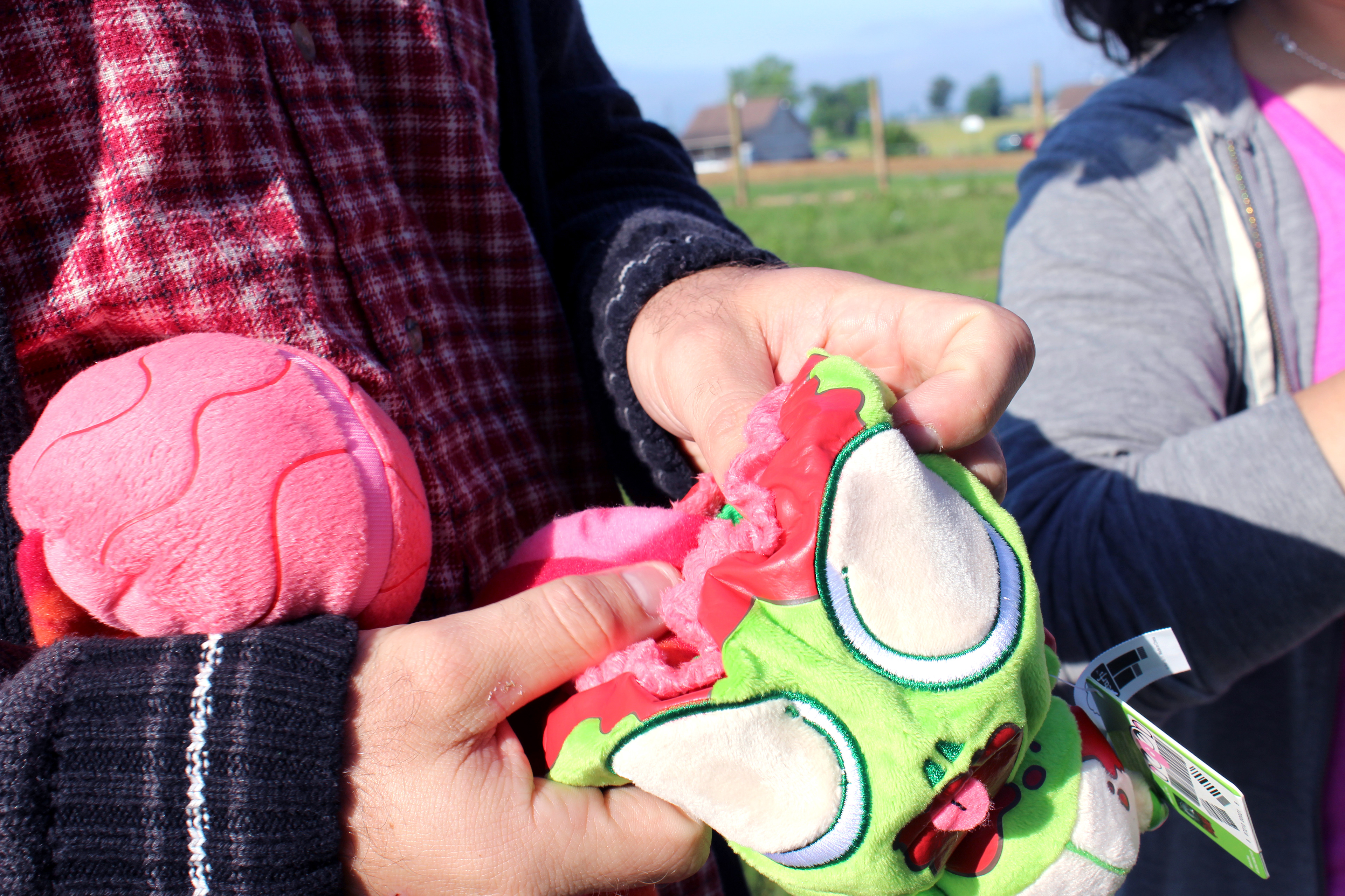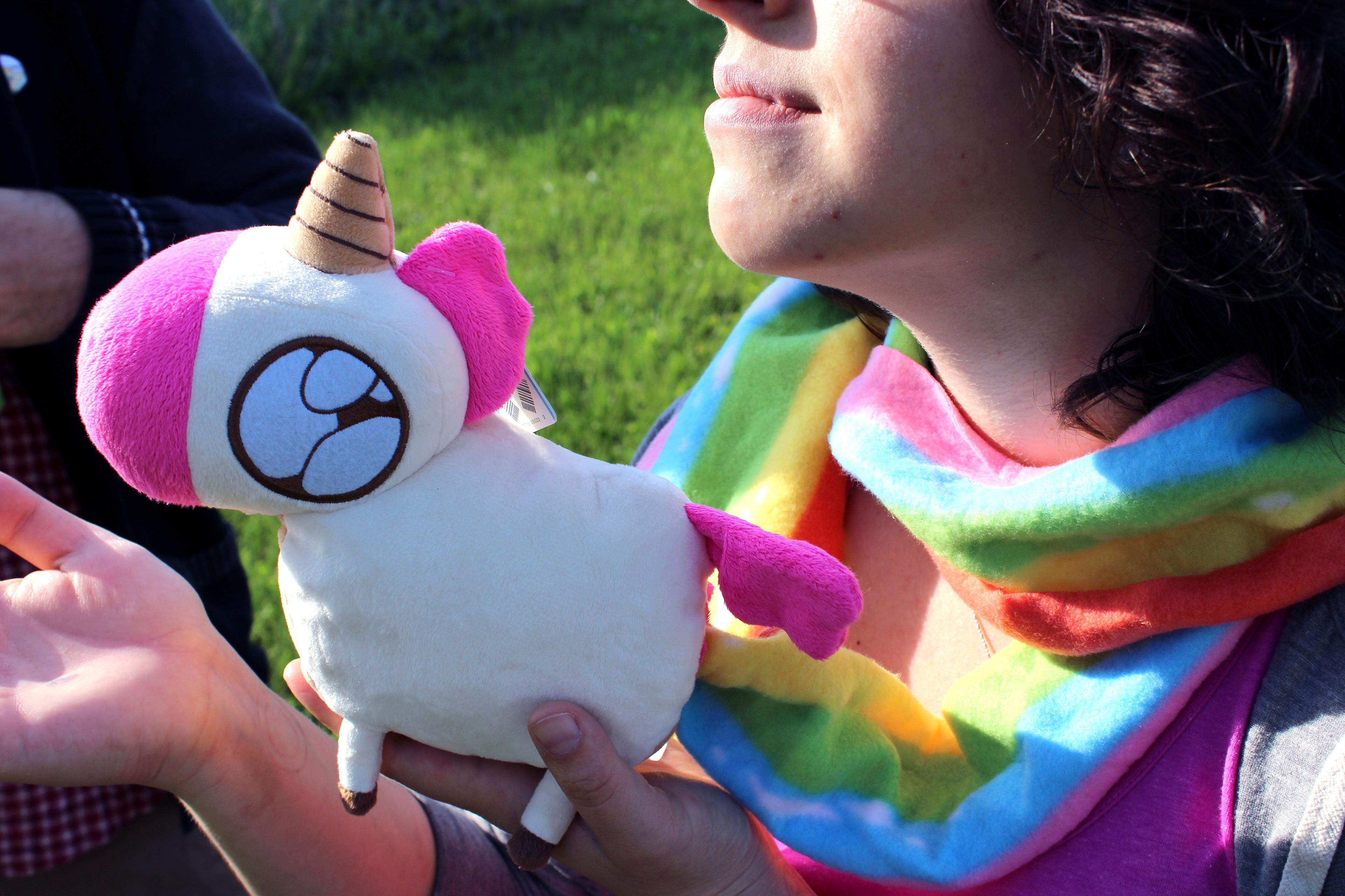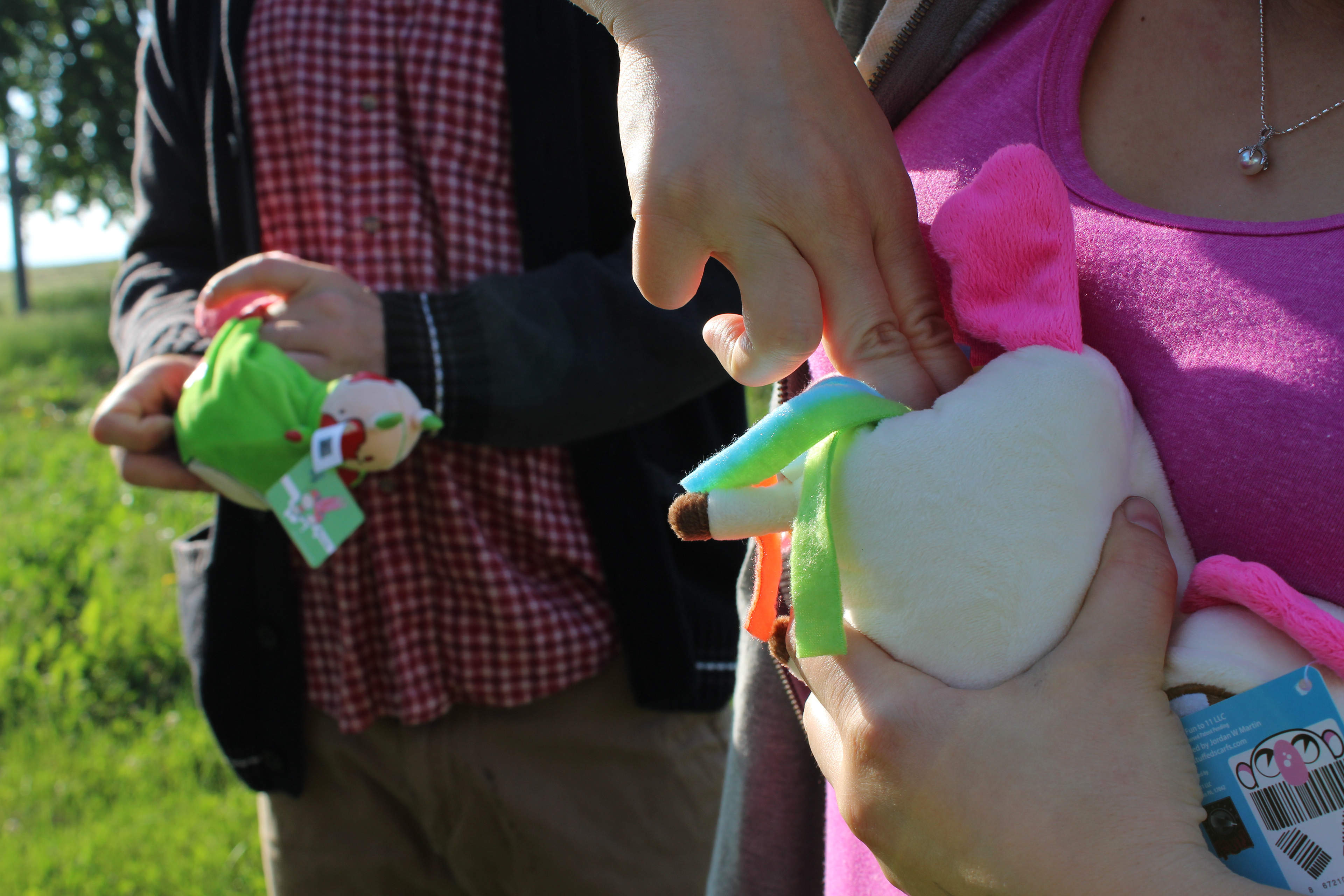 This is an amazing project that I did with Fun to 11. It started as an idea I came up with while at a state fair, and thanks to Fun to 11, it became a reality. Doodle the unicorn has a warm rainbow poop scarf, and George the zombie has a lovely entrails scarf with a plush brain at the end. I even designed the custom printed fabric for the scarfs!